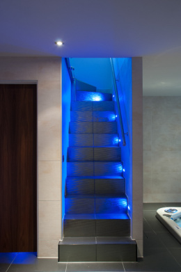 The entrance is via a magnificent front door leading into a triple-height space with dramatic staircase sweeping upwards, taking the eye through the glass balustrading and glazed rooflight and the shimmering chandelier.