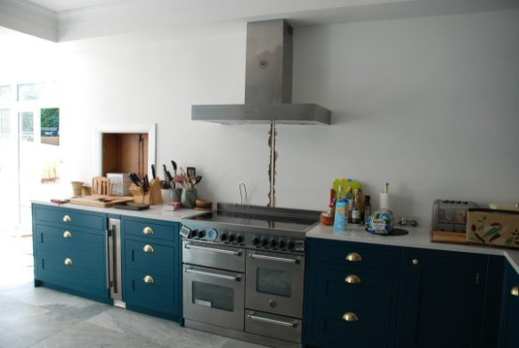 Rear extension to art deco detached house. The brief was to create new windows and door to complement existing art deco style. Addition of a family breakfast room completely transformed original kitchen.