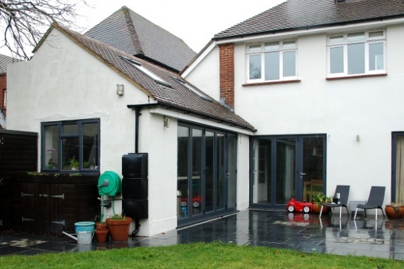 The front door was lost on this house so we created a large front entrance joining the garage to the house and then converted the garage to a kitchen. Hidden boot room and utility room are top lit with rooflights.