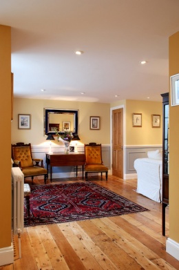 Front of house was kept as flint faced cottage with sash windows and interiors and rear of house was updated with modern finishes and fittings.